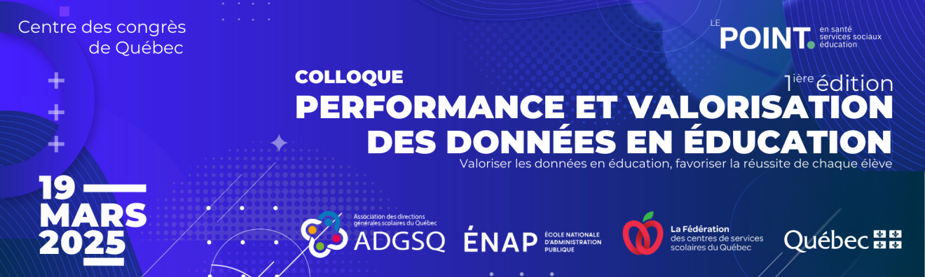 L’organisme à but non lucratif Le Point en santé et services sociaux | Éducation est fier d’annoncer le lancement officiel de la 1re édition du colloque Performance et valorisation des données en éducation. Sur le thème Valoriser les données en éducation, favoriser la réussite de chaque élève, le colloque aura lieu le mercredi 19 mars 2025 au Centre des congrès de Québec.