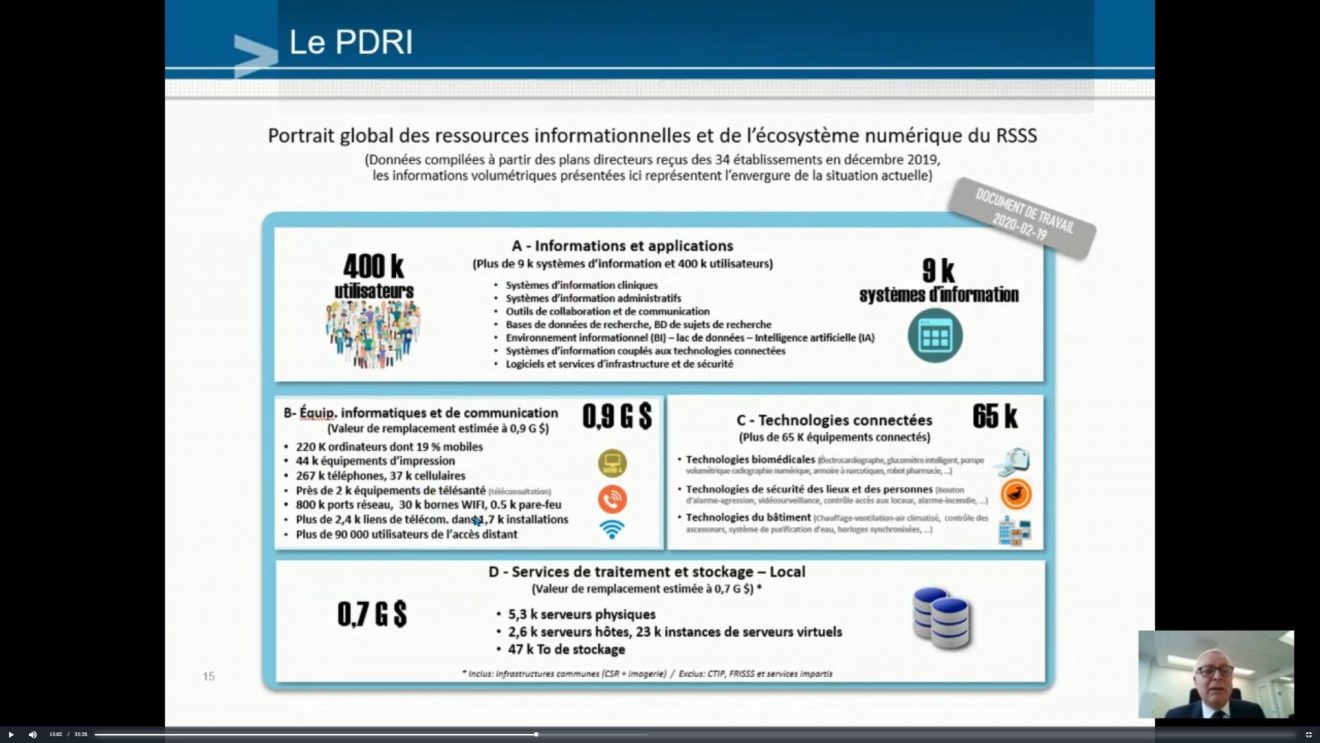 « Le projet, évalué entre 1,5 et 3 milliards de dollars, a été approuvé par le Secrétariat du Conseil du trésor et le Conseil des ministres, et on a eu un budget de 45 millions de dollars pour faire les étapes de planification et d’acquisition du Dossier santé numérique au Québec. Donc, officiellement, ce dossier-là est dans les cartons du gouvernement du Québec. L’investissement de cette année est dédié aux ressources humaines internes et externes afin de préparer le chantier de DSN. »